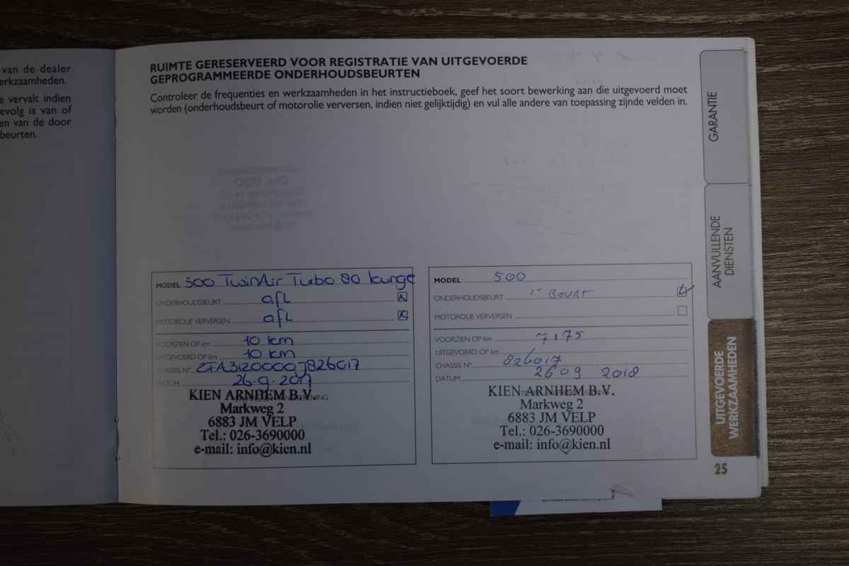 Wat leuk dat u naar onze occasion kijkt! Wij bieden met trots deze origineel Nederlands geleverde Fiat 500 0.9 TwinAir Turbo Lounge. Keurig volgens schema onderhouden. De laatste onderhoudsbeurt is uitgevoerd bij een kilometerstand van 97.475km